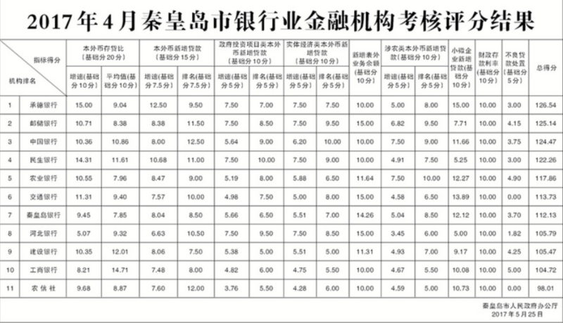 据悉,该考核评分活动是由秦皇岛市人民政府组织,市金融办牵头,市财政局、人民银行、银监分局等有关部门共同参与评价,旨在进一步推动市域内银行业金融机构认真贯彻落实支持实体经济发展的一项重要举措。该考核体系自发布实施以来,在科学性、权威性、公正性等方面都受到行业内部和社会各界的普遍关注与认可。