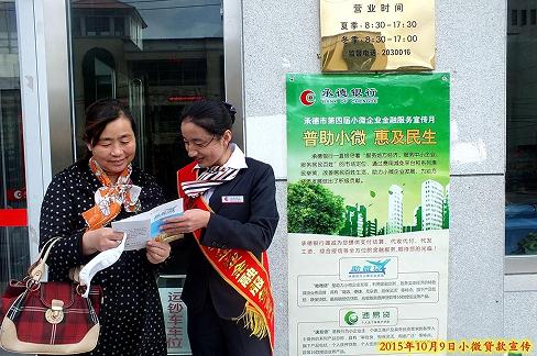 期间,我行承德辖内41家支行共同参与,充分利用各种宣传媒介和丰富多样的宣传方式,向广大客户介绍了我行小微信贷产品的优势和特点。一是制作宣传折页和宣传展板,清晰地介绍了各项产品和服务的定义、特点、期限、流程等;二是充分利用LED屏、视频播放器等电子媒介,不间断播放以“第四届小微企业金融服务宣传月”和“助小扶微、惠及民生”等字样为主的宣传标语,同时在营业室播放小微专题宣传片;三是加强网点宣传,各网点均有专职名宣传员,佩戴“承德银行小微企业金融服务宣传员”绶带,宣传我行小微企业信贷政策,解答客户疑问等;四是进行集中宣传日活动,分别于9月16日、9月28日和10月9日这三个集中宣传日组织各分支机构统一在网点门前或者市区广场进行对外宣传,耐心向现场咨询的客户讲解和推荐我行的金融产品,营造了良好的“扶小帮微”宣传氛围。