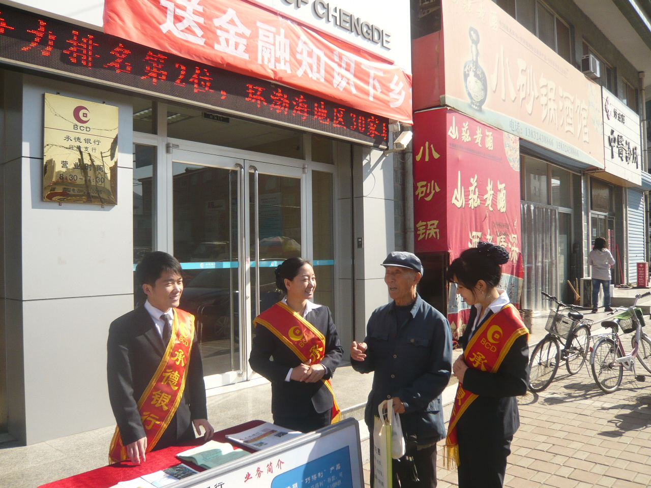 为进一步丰富百姓金融知识,提升群众防假防骗能力,有效宣传全行的特色产品和惠民政策,承德银行组织开展了为期一个月的“送金融知识下乡”专题宣传活动。据悉,此次活动以我行双滦、双塔山、宽城、承德县、平泉、滦平、隆化、兴隆等8个县、区支行为依托,组织60余名员工深入到街道、社区、乡镇、农村等基层,通过悬挂条幅、摆放展台、印发资料、现场讲解等方式免费为过往百姓宣讲金融知识,并对该行热河卡、网上银行、柜面通、公务卡、巧得利、农民工卡等特色产品以及联保贷款、下岗失业人员担保贷款、最高额抵押贷款等重点业务进行宣传推介。活动共计发放宣传资料7200余份,接受现场、电话、短信等各类咨询1300余次,员工们专业的素养、真诚的态度、细致的讲解赢得了群众的一致赞誉与肯定,承德银行“百姓银行”的形象更加深入人心。