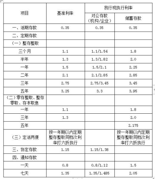 承德银行人民币存款利率表 (2021年6月21日起执行)